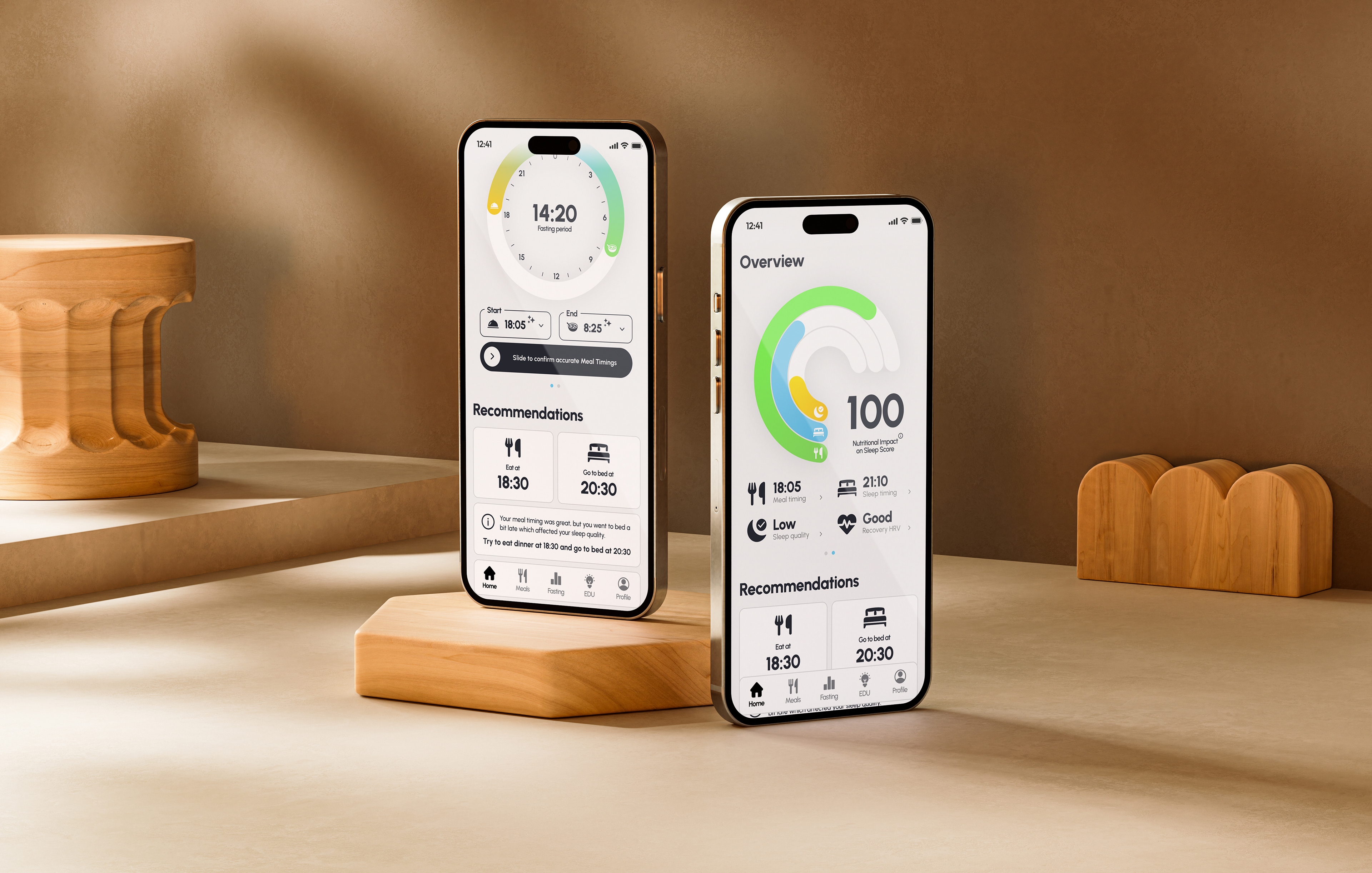 While Nourify offered strong functionality, the initial UI lacked visual clarity and overwhelmed users with confusing graphs and unclear structure. Key insights like optimal meal and sleep timings were not well communicated. Nourify integrates data from Garmin smartwatches to track sleep quality, fasting windows, and the nutritional impact on sleep and recovery. The app uses a proprietary algorithm to automatically detect when users went to bed or ate, but this wasn’t clearly communicated in the original design. These predictions also aren’t always accurate, users need the ability to manually confirm or adjust them — a process that, in the initial design, was unintuitive and poorly communicated.